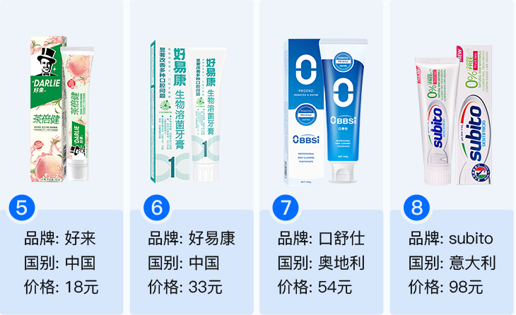 带着这些问题,我们从京东平台依照产品销量,口碑,国际知名度,评价等维度,挑选了排名靠前的8款牙膏进入这次评测。