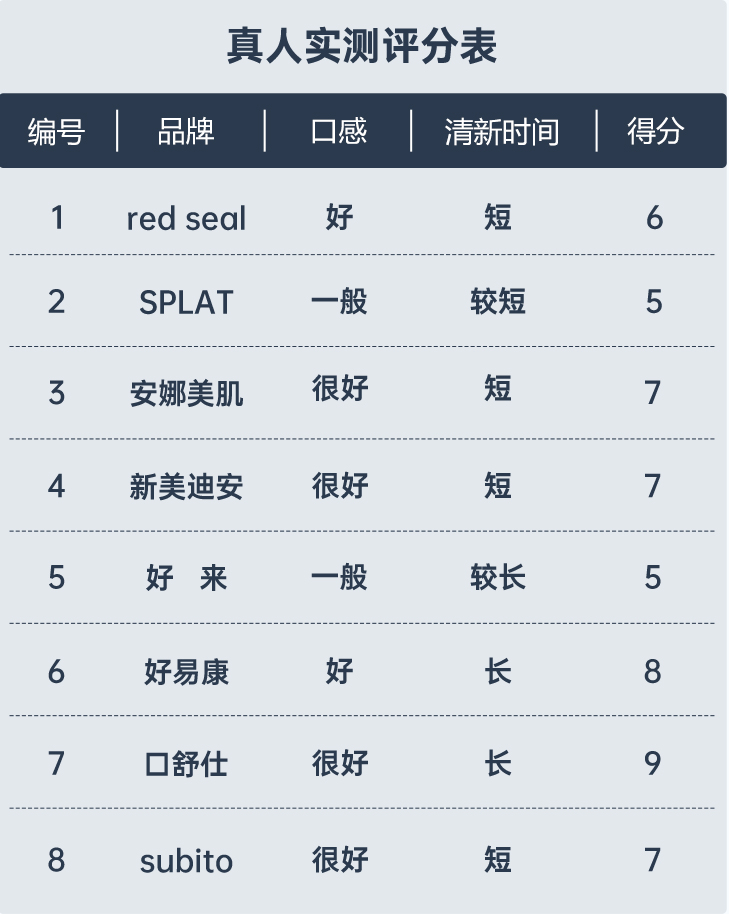 通过本次评测,冠军出乎我们意料,是来自奥地利品牌口舒仕,清洁效果,口感和成分方面都占据优势,而独有的益生菌+酵素配方,使其在深度清洁方面效果会更好。